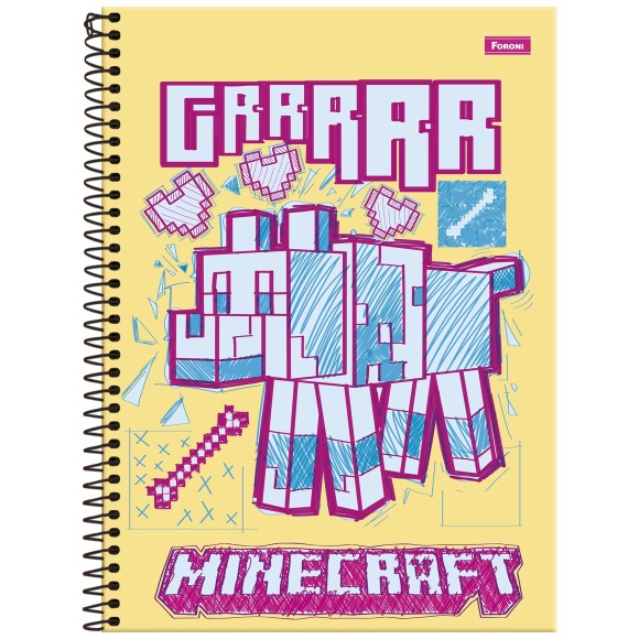 Caderno 1 Matéria Universitário Espiral Minecraft - Foroni