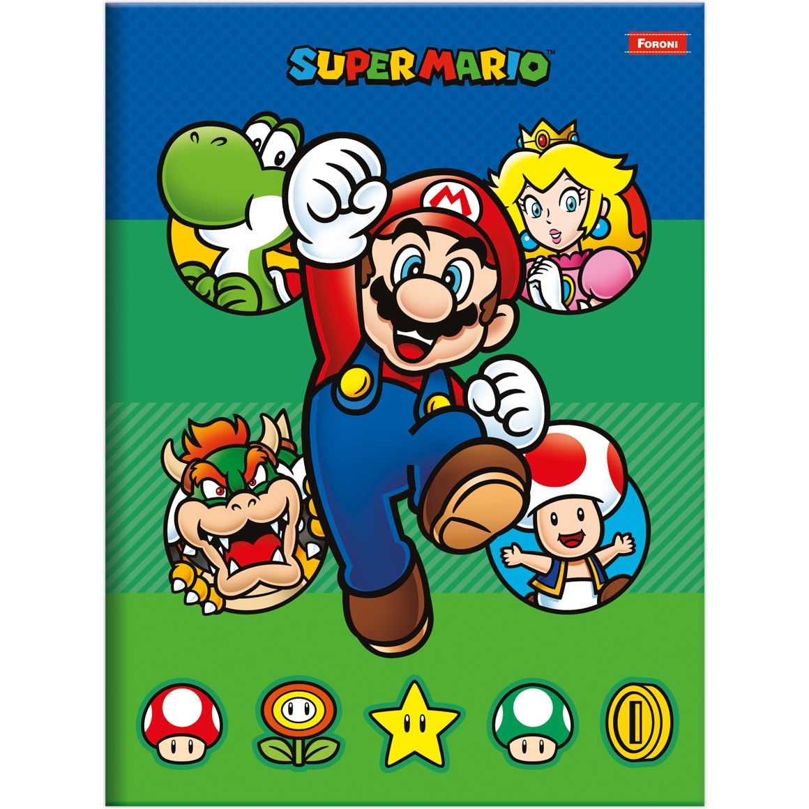 Os Cadernos Brochura e Brochurão Capa Dura Super Mario busca retratar o universo do personagem encanador fictício Mario e seus amigos de jornada.