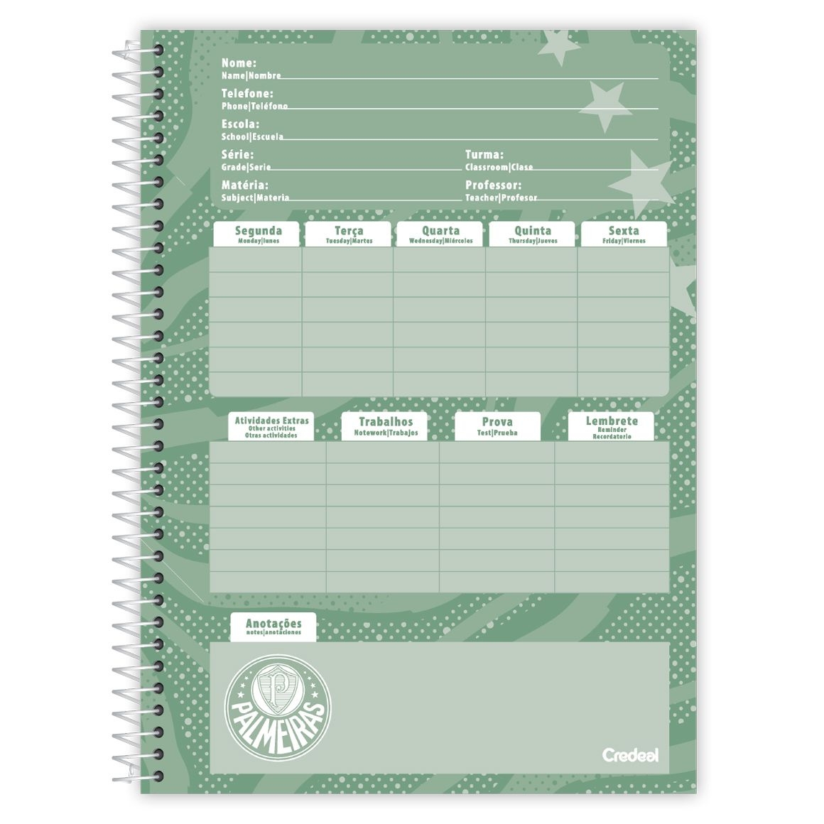 Caderno 10 Matérias Universitário Espiral Palmeiras - Credeal