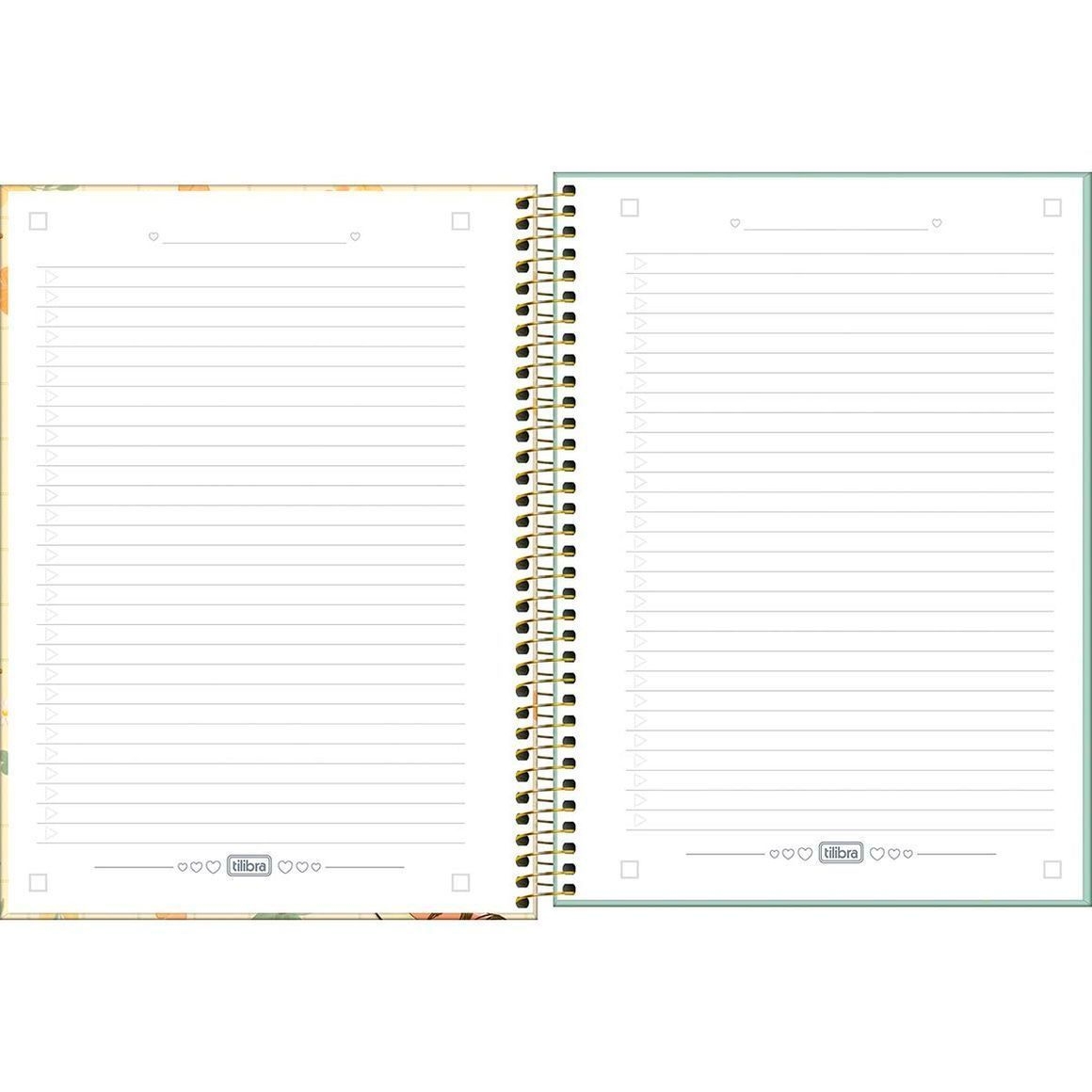Use este modelo, com capa dura com a parte interna decorada, bolsa de papel para guardar trabalhos, adesivos funcionais, folhas pautadas e espiral colorido, para anotar as aulas, fazer resumos, listar tarefas e organizar as ideias de forma prática e eficiente.