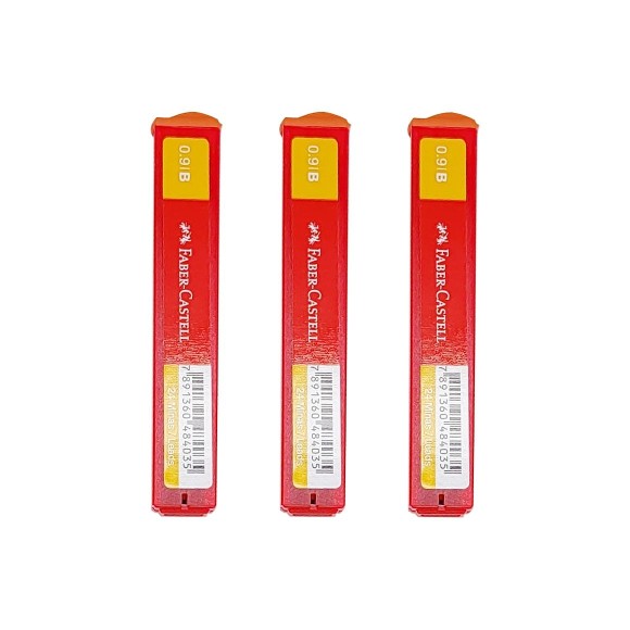 Grafites para Lapiseira 0,9 mm B Kit com 3 estojos - Faber-Castell